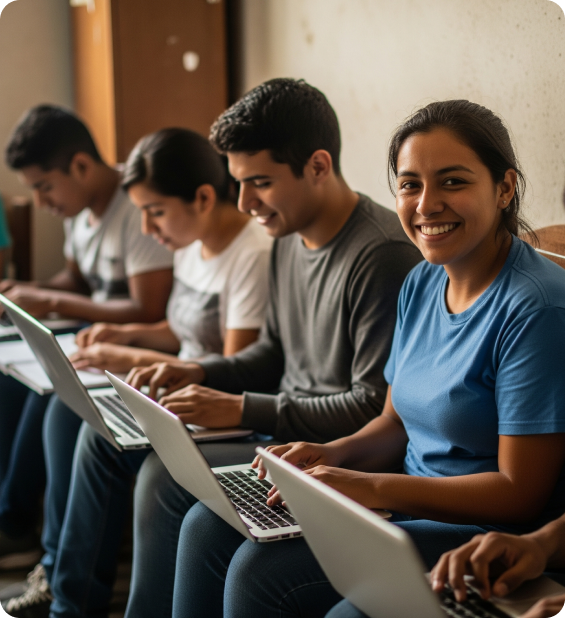 Al adquirir uno de nuestros productos, haces posible que 10 personas en situación vulnerable se capaciten completamente gratis con nuestro programa de becas.